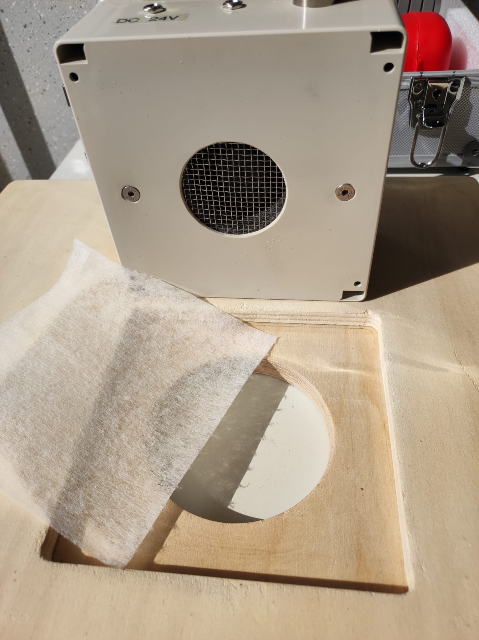 Unser Stocklüfter ist eine kleine Box, welche auf den Deckel der Bienenbeute gesetzt wird, um saubere Bienenstockluft kontrolliert zu entnehmen. Der Stocklüfter zieht mit einem sehr leisen Lüfter die warme Stockluft nach oben. Diese kann dann beispielsweise durch einen beheizten Schlauch zur Maske transportiert werden. Ausgeatmet wird über ein Ventil an der Maske.